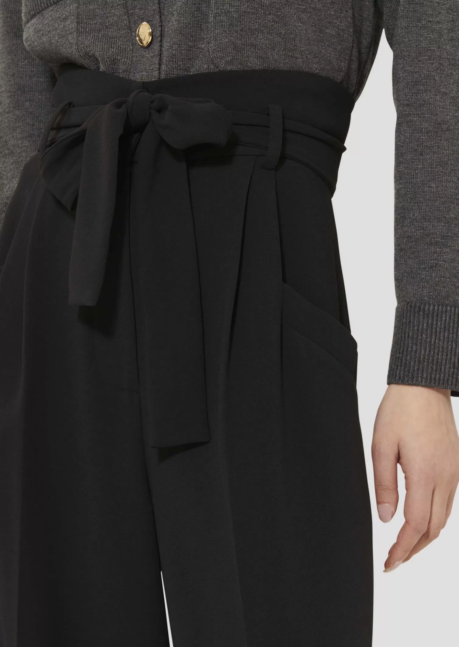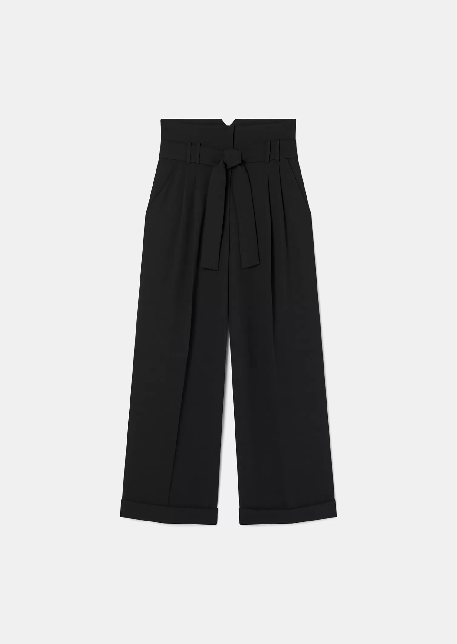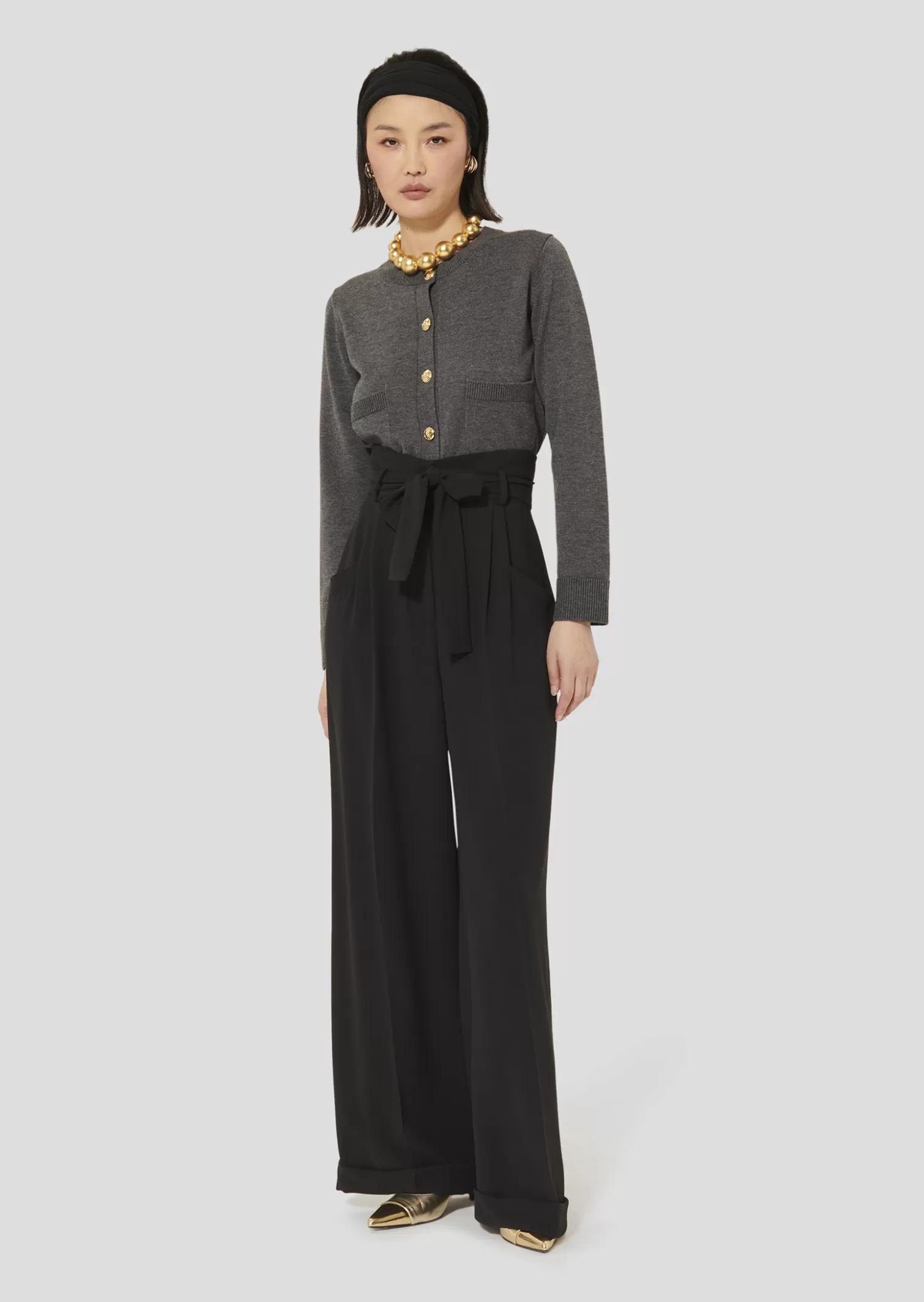 Notre iconique pantalon Pia est de retour en noir cette saison. En crêpe, il possède une jambe large et une taille haute marquée d’une ceinture ton sur ton avec de larges poches aux côtés et des revers au bas pour une allure toujours aussi élégante.